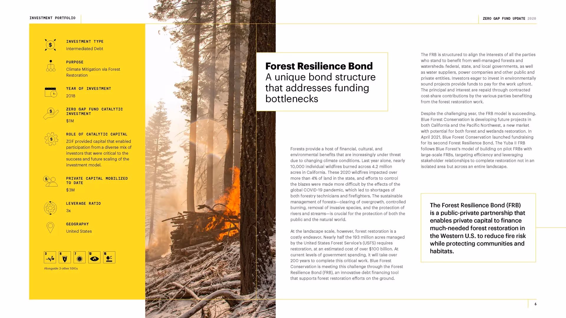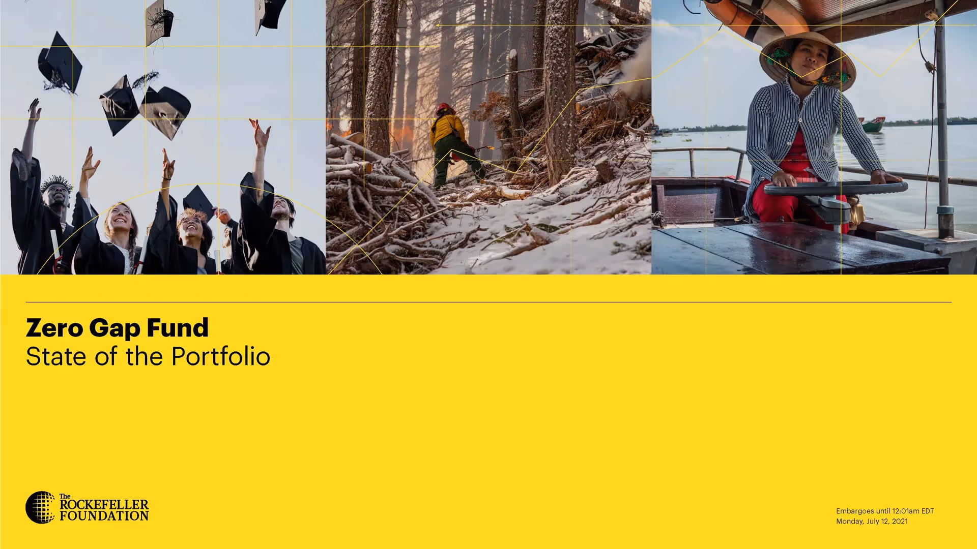 Der Zero Gap Fund (ZGF) der Rockefeller Foundation investiert in innovative Lösungen für globale Herausforderungen und arbeitet mit dem Catalytic Capital Consortium (C3) zusammen, um private Investitionen anzuziehen. Jedes Jahr veröffentlicht der Fonds einen Bericht zum Stand des Portfolios, in dem seine Auswirkungen hervorgehoben werden und die Rolle des Katalysatorkapitals bei der Mobilisierung privater Investitionen für einen positiven globalen Wandel aufgezeigt wird.