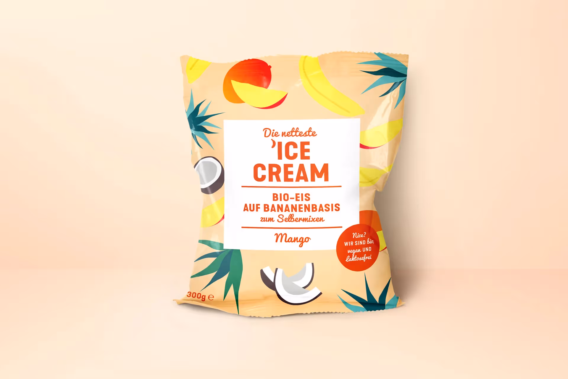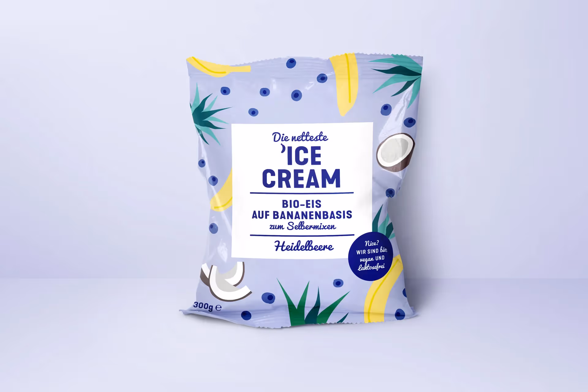 Die netteste ’IceCream – the world’s nicest bio-ice cream, where the content resembles the package. The product explains itself at first glance: the design emphasizes the text and the abstracted illustrations of the respective ingredients. The depiction of the contents underlines the niceness of the bio-product, while pleasant pastel colors get you in the mood for summer, leisure and – of course – ice cream.